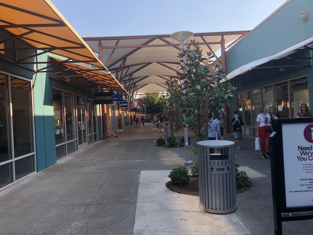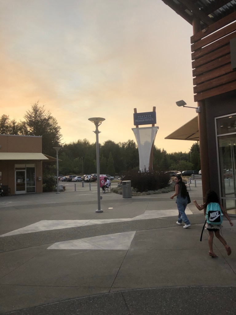 Wir sind bis an den Rand von Seattle gefahren. Hier war ein riesiges Einkaufszentrum. Hunderte an Shops reihen sich aneinander, aber trotzdem ist alles ziemlich menschenleer und es sieht nichts vollgestopft aus.