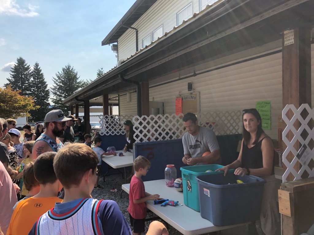 Danach sind wir wieder zurückgekommen und so langsam füllte sich der Platz. Spiele wurden aufgebaut und Grills und Essenstände ausgepackt. Wir schauen uns eine stille Auktion an, die hier ebenfalls abgehalten wird, bis alles aufgebaut ist.