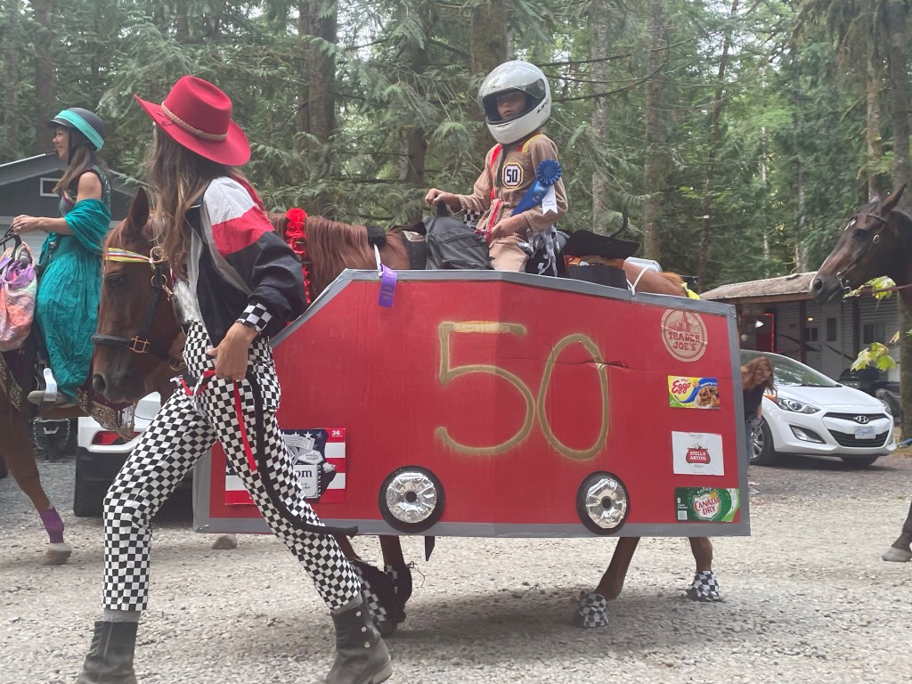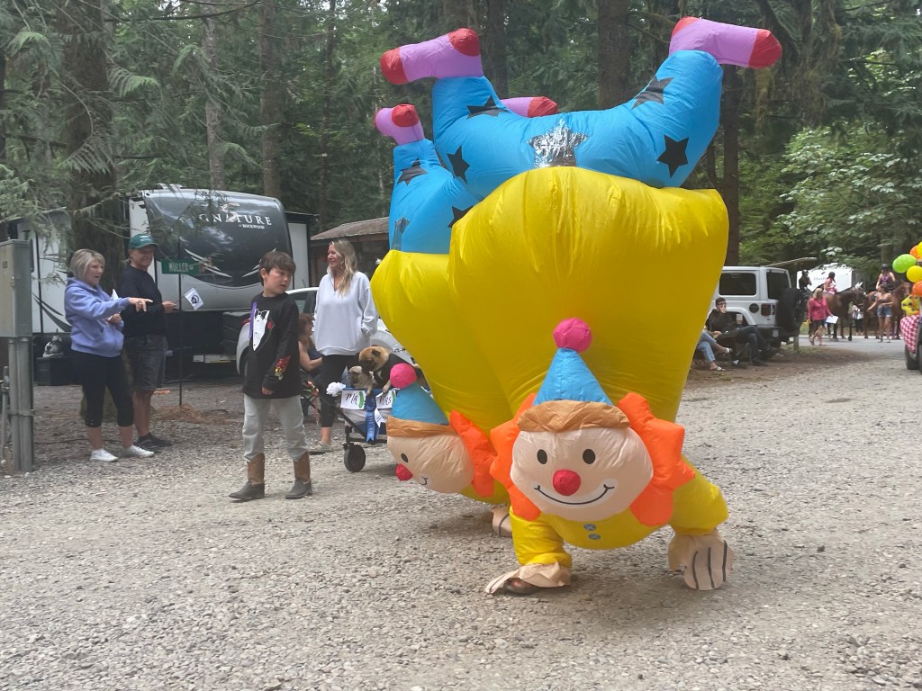 Die Parade ging nur circa 15 Minuten, aber trotzdem war es sehr nett. Hat mich ein wenig an Fastnacht erinnert. Wir haben Süßigkeiten bekommen, auch wenn man nicht HELAU schreien muss😅. Nach der Parade sind wir runter gegangen (der Platz mit den Wohnwagen ist oberhalb der eigentlichen Ranch gelegen). Unten haben wir uns einen Platz auf einer kleinen Wiese ausgesucht und haben uns dort hingesetzt. Jedoch schien alles noch aufgebaut zu werden, sodass man noch nicht wirklich etwas machen konnte. Aus diesem Grund sind wir auf einen Spielplatz gegangen. Wir haben erst alle zusammen geschaukelt, bis ich ein Warnschild entdeckt habe, dass darauf hinweist, dass der Spielplatz NUR für Kinder ist und ich bin mir ziemlich sicher dass ich in diese Kategorie nicjz mehr reinzähle, vor allem wenn man aufs Gewicht guckt. Nach einer Zeit verstand ich dann auch wieso der Spielplatz NUR für Kinder ist.