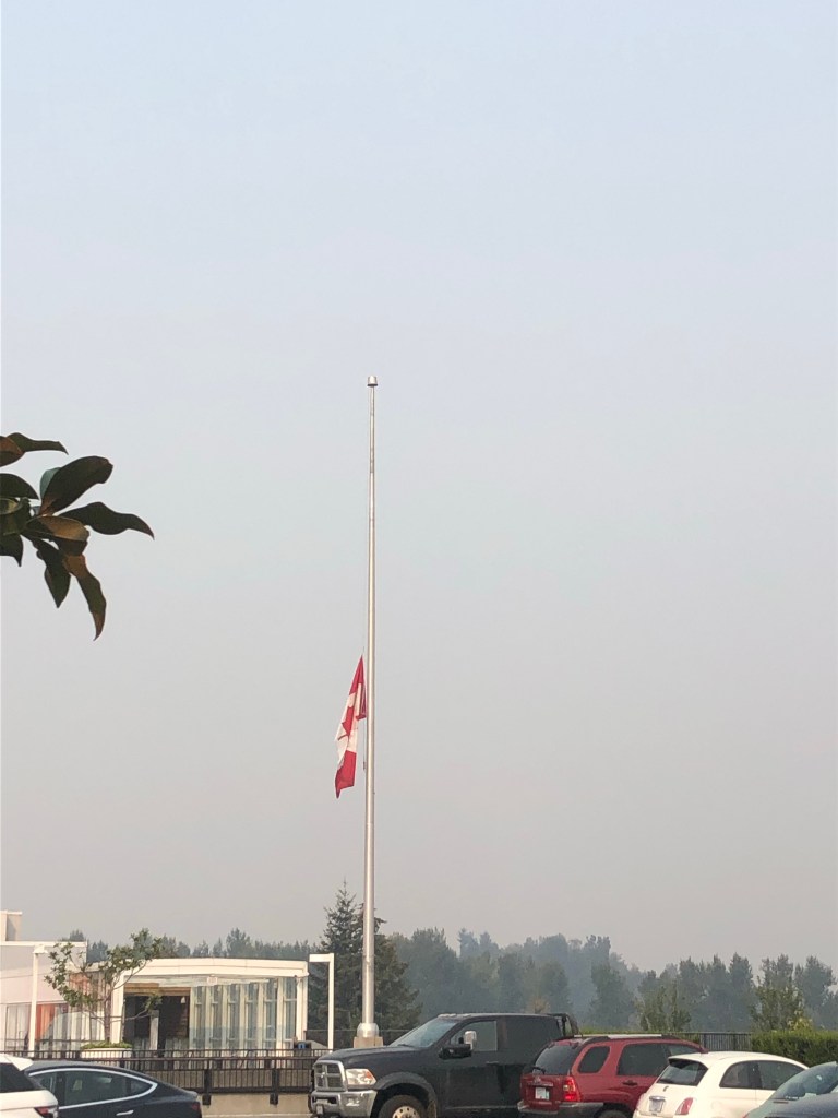 Heute morgen habe ich erstmal mit Mama und Papa telefoniert. Das hat ziemlich viel Zeit eingenommen. Gegen 11 habe ich dann das erste mal mein Zimmer verlassen und habe mir was zum Essen geholt. Unten habe ich dann meine Gastschwester getroffen. Nachdem ich mir was zu essen gemacht habe, bin ich dann wieder hochgegangen und habe ein wenig Fernseh geschaut. Gegen 13 Uhr bin ich dann aufgebrochen in Richtung Highsteet Mal. Hier wollte ich mich mit einem deutschen Mädchen treffen. Dadurch dass ich gelaufen bin habe ich circa eine halbe Stunde gebraucht, aber es war ein sehr scvöner Spaziergang. Zudem war es es echt interessant zu sehen, wie sehr der Rauch hier um Tal hängt. Ich glaube das hatte ich gestern vergessen zu sagen, also hier in Kanada (circa 70km von uns entfernt) und irgendwo in den USA (vermutlich nah der Grenze) sind Waldbrände und dadurch, dass wir hier in einem Tal leben zieht der ganze Rauch von den zwei Feuern hier hinein. Das hat man heute hier ganz deutlich gesehen. Zum Glück rieche ich den Rauch nicht, meine Nase ist immer noch zu verstopft😅. Aber meiner Gastmutter geht es zum Beispiel wegen des Rauches echt doof. Sie musste heute den ganzen Tag im Bett liegen bleiben, weil sie leichte Atemprobkeme und nen Schwindelgefühl hat😬🥺. Ich hoffe das wird wieder besser.