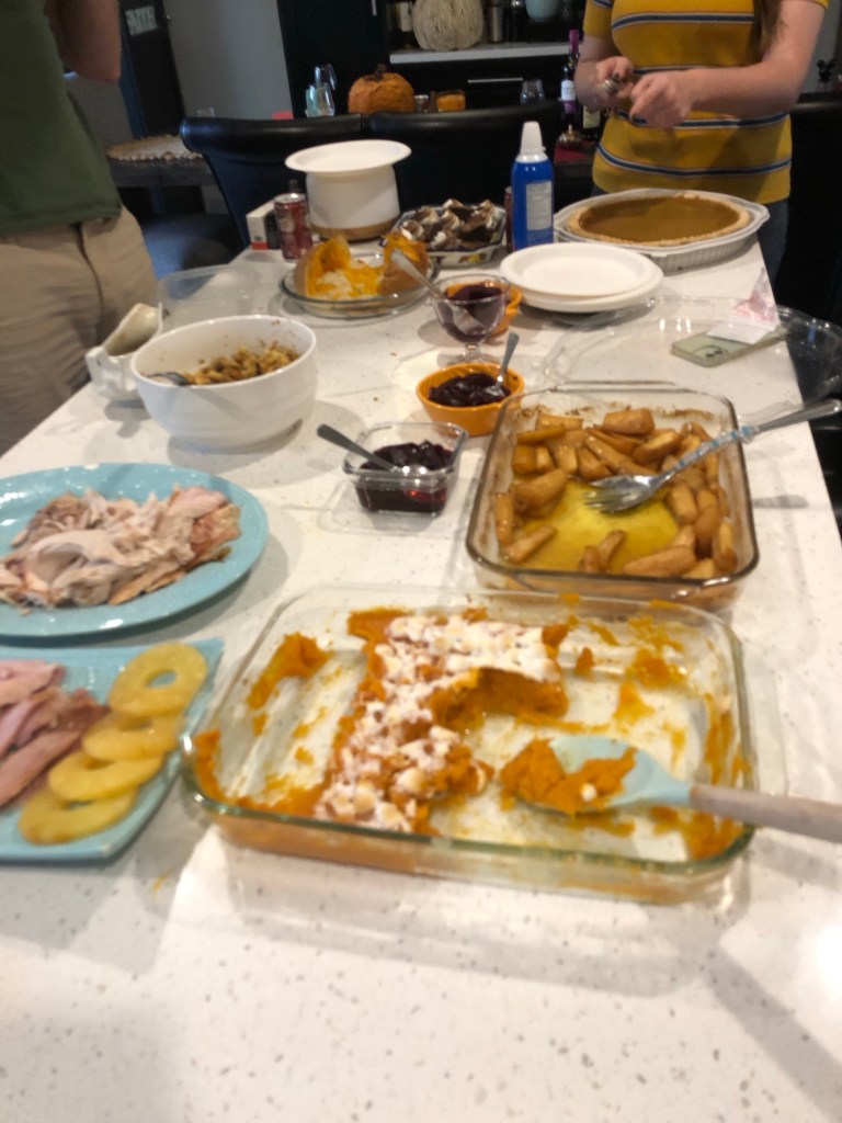 Das Essen war sehr lecker! Es gab Truthahn, Schwein, Süsskartoffeln, Kartoffeln (die ersten die ich bis jetzt hatte) und noch vieles mehr😋!