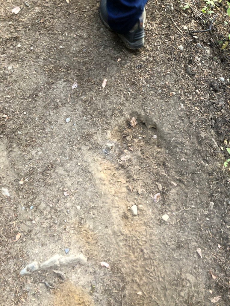 Die Wanderung began nicjz gerade harmlos. Sofort ging es in Serpentinen steil bergan. Die erste Pause zum ausziehen kam dann wieder relativ früh. Als wir dann wieder weitergelaufen sind haben wir die ersten Hinweise bekommen, dass wir nicht alleine im Wald waren.