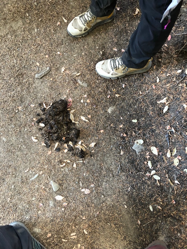 Nach circa einer Stunde Wanderung hörten die Serpentinen dann langsam auf und wir befanden uns im Winter wonderland😅. Zum Glück war uns kein Bär begegnet. Das einzige was wir noch gefunden hatten war ein Häufchen Kacke von Wildkatzen.