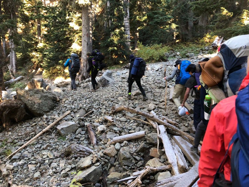 Heute mussten wir echt früh aufstehen. Um 7 Uhr waren wir aus unseren Betten raus. Es war einfach vieeeeeel zu kalt. Zitternd sind wir dann zum Frühstück gegangen und haben wieder Bagels gegessen. Ne Stunde später haben wir dann angefangen unsere Sachen zusammenzupacken. Im Nachhinein war das viel zu wenig Zeit. Kurz nach neun sind wir dann fertig geworden und dann ging es auch schon los. Die Wanderung war viel leichter diesesmal weil es eigentlich nur Berg runter ging. Dummerweise hat sich bei uns im der Gruppe jemand den Fuß verknackst. Das hieß dann dass wir deutlich länger brauchten. Naja…trotzdem sind wir dann ziemlich schnell nach unten gekommen.