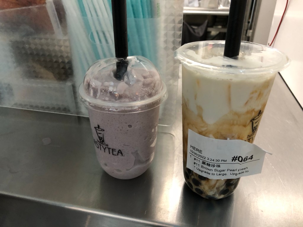 Danach sind wir noch einmal im einen Schrottschmuckladen gegangen, um vielleicht so eine billig Kette zu bekommen für Halloween. Habe aber nichts gefunden🤯. Naja….gegen Ende haben wir uns dann noch einen Bubble Tea gekauft. Den den icu heute hatte war am besten. Der war soooooo gut!!!!!