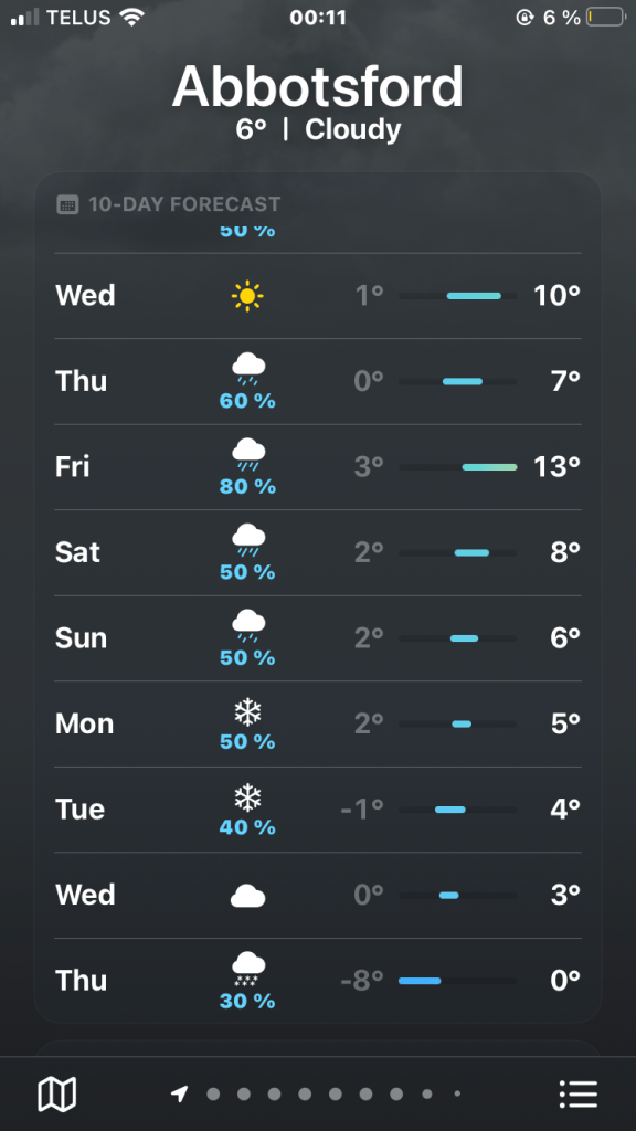 Was vielleicht noch witzig zu erwähnen ist, ist dass bei uns die Temeperaturen jetzt echt abfallen sollen. Soll jetzt in ner Woche am Tag -8 Grad werden. Außerdem soll es schneien😅🫣!